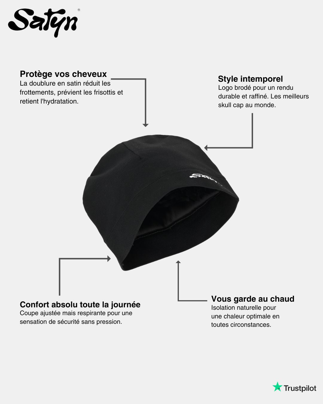 Prenez soin de vos cheveux avec style dès maintenant avec notre bonnet Satyn, l’accessoire incontournable pour combiner style moderne et soin capillaire ! Ce bonnet est proposé pour les amateurs de streetwear et ceux qui recherchent une fonctionnalité sans compromis sur leur look. Notre bonnet est un parfait équilibre entre esthétique et bien-être.