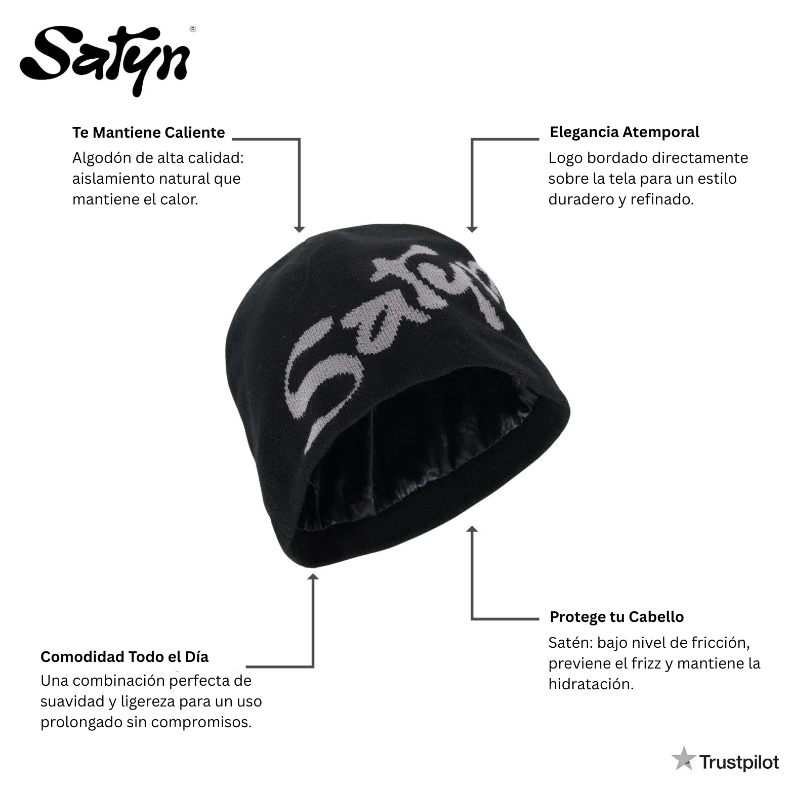 Cuida tu cabello con estilo desde ahora con nuestro gorro Satyn, el accesorio imprescindible para combinar un estilo moderno con el cuidado capilar. Este gorro está diseñado para los amantes del streetwear y para quienes buscan funcionalidad sin renunciar a su look. Nuestro gorro ofrece el equilibrio perfecto entre estética y bienestar.